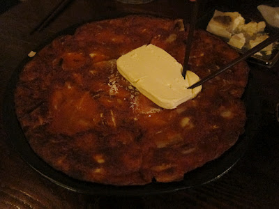When we arrived at the restaurant, my stomach was upset and I wasn't in the mood to eat anything. But then the jeon arrived at the center of the table, a warm omelety-crepey concoction, perfectly browned and topped with cream cheese. How could I resist? Exceptional bar food, even on a bad stomach.